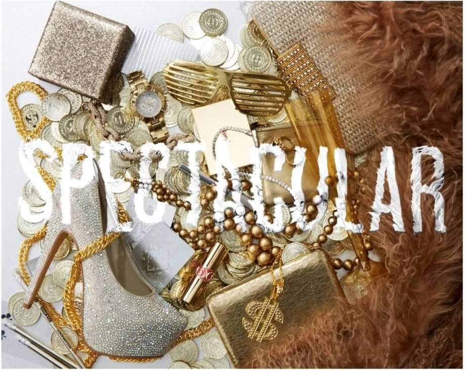 I created this composition starting first with color correction and retouching and then super imposed a white spray paint ‘SPECTACULAR’ over the items with photoshop. Splashlight sent this image out to their clients as part of a holiday card.